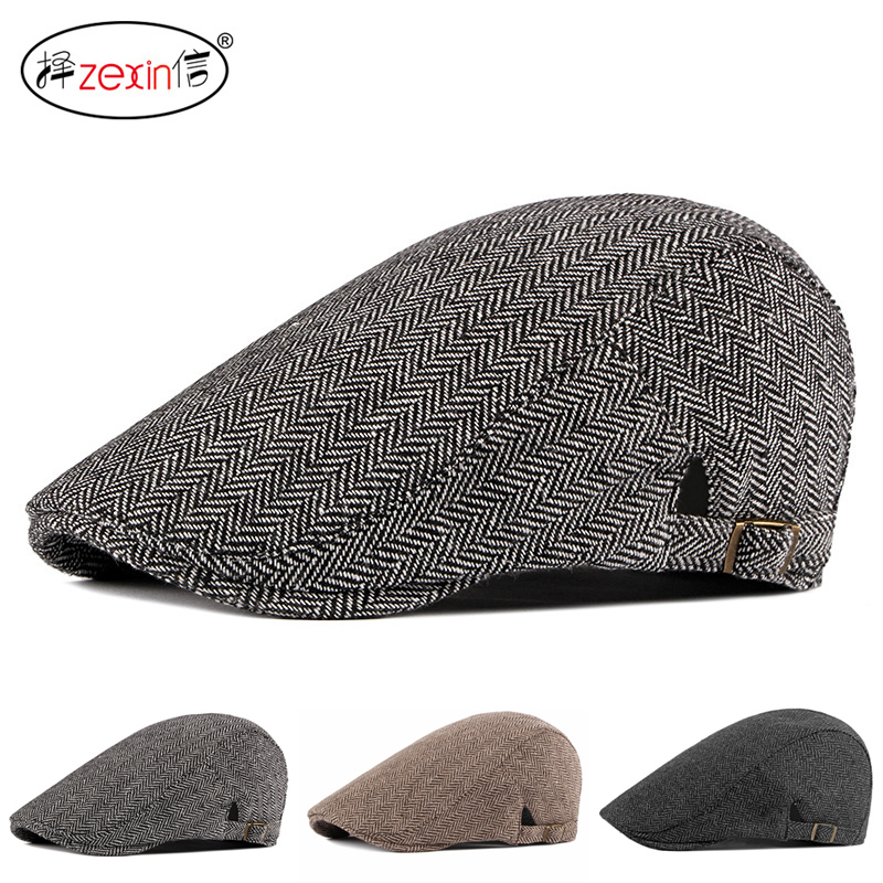 拼接人字纹贝雷帽男女英伦大码鸭舌帽春秋季休闲遮阳帽复古前进帽