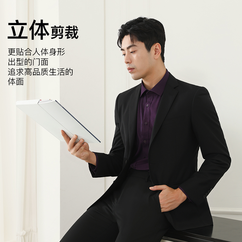 乔治白秋冬羊毛轻商务时尚面试正装挺括易打理平驳领休闲西服男