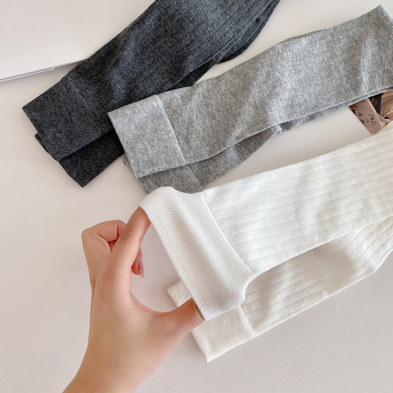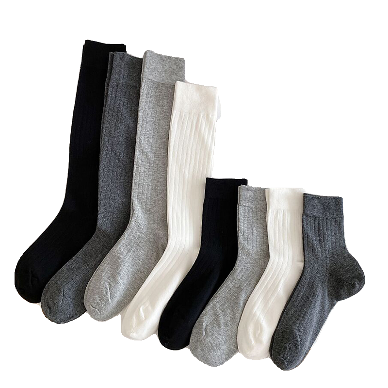 中长袜子基础款竖条纹小腿袜女中筒袜春夏薄款棉袜黑白灰无骨堆堆