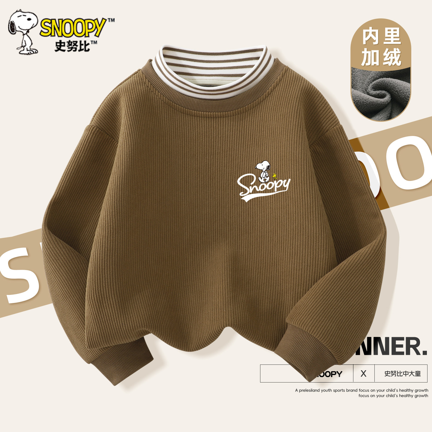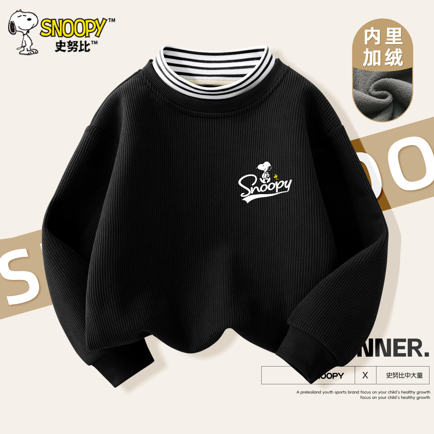 史努比童装男童加绒卫衣秋冬款2025新款儿童加厚上衣中大童打底衫