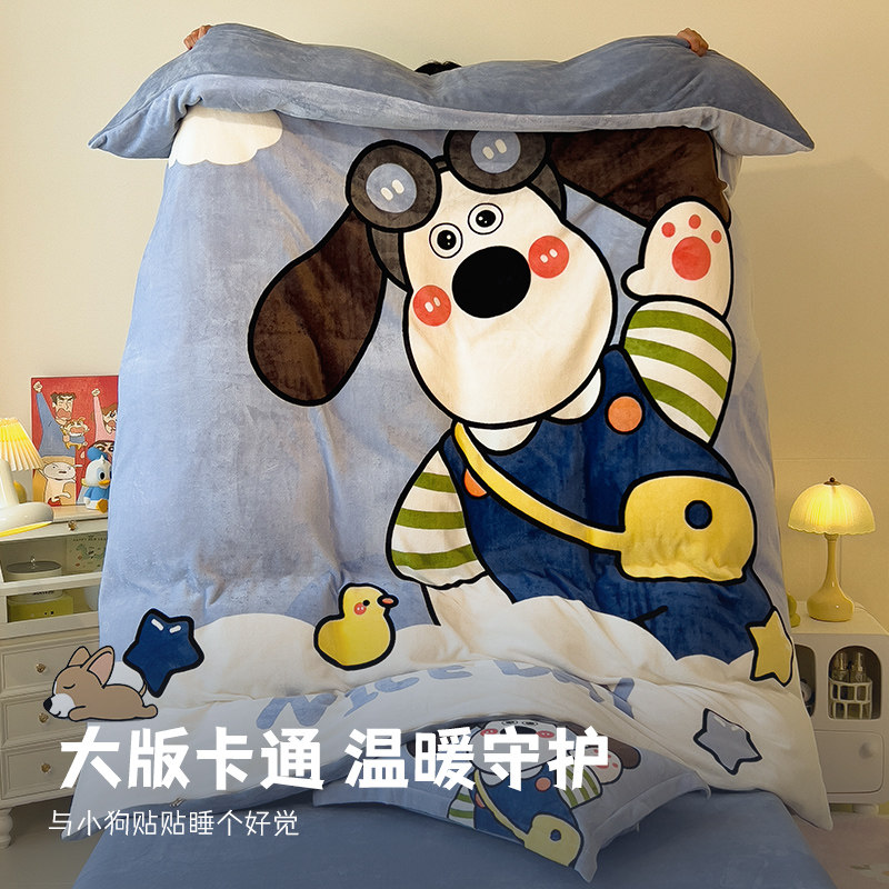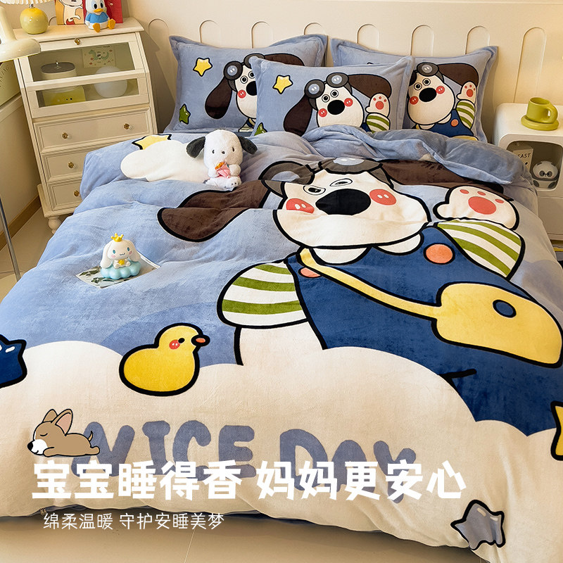 a类母婴加厚牛奶绒2026新款珊瑚绒四件套可爱儿童被套床单三件套