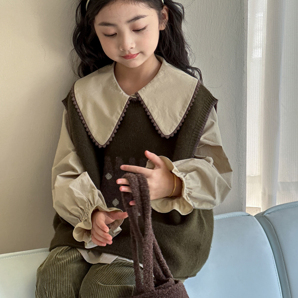 女童针织马甲中长款春秋款2025新款儿童洋气坎肩时髦背心秋装童装
