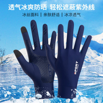 防晒手套夏季冰丝薄款防滑手套户外钓鱼骑行手套男女款外卖露两指