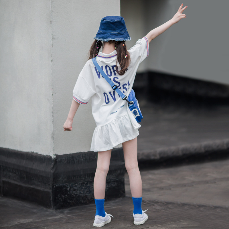 童装女童休闲宽松连衣裙2021夏季新款中大童POLO翻领短袖亲子裙潮