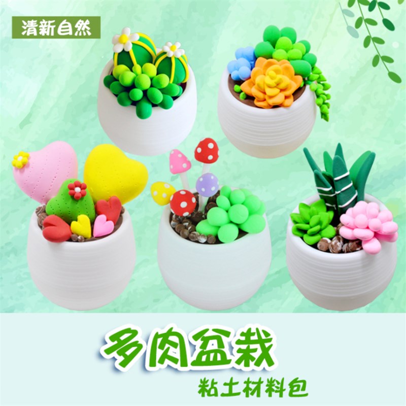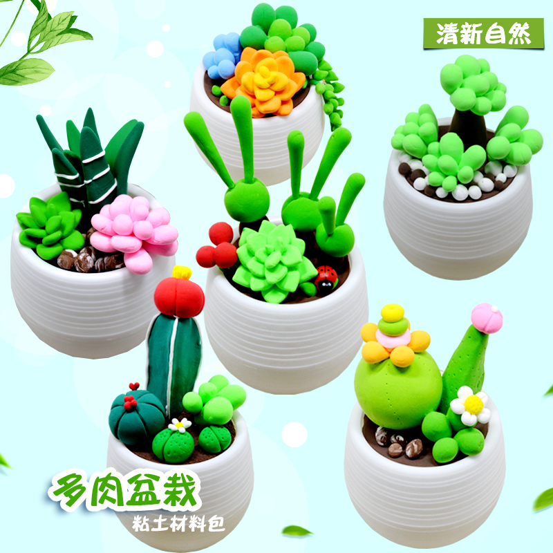 儿童手工花盆diy超轻粘土材料包 彩泥橡皮泥花朵盆栽植物花制作