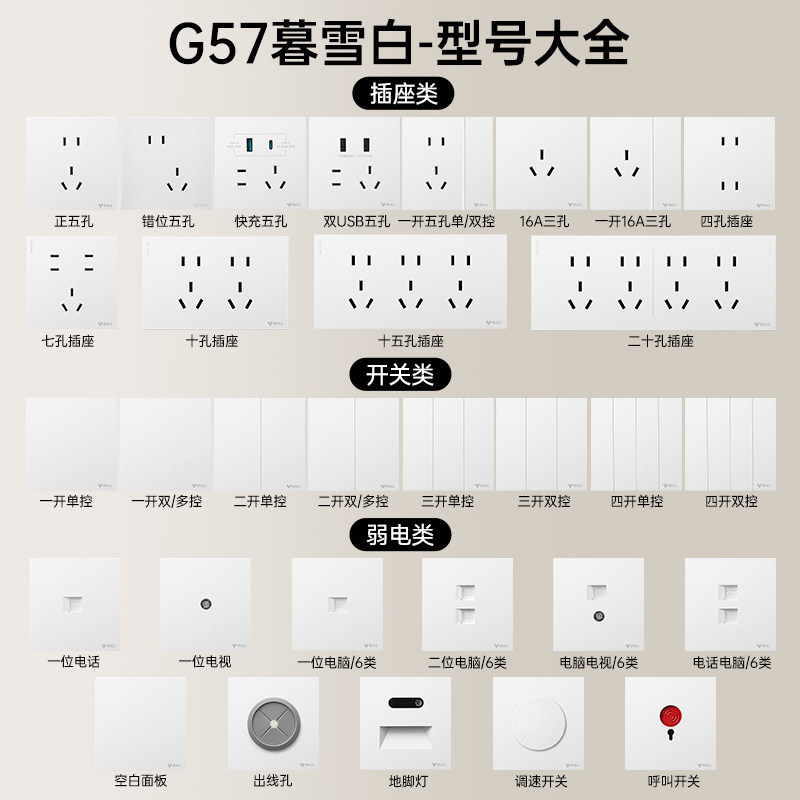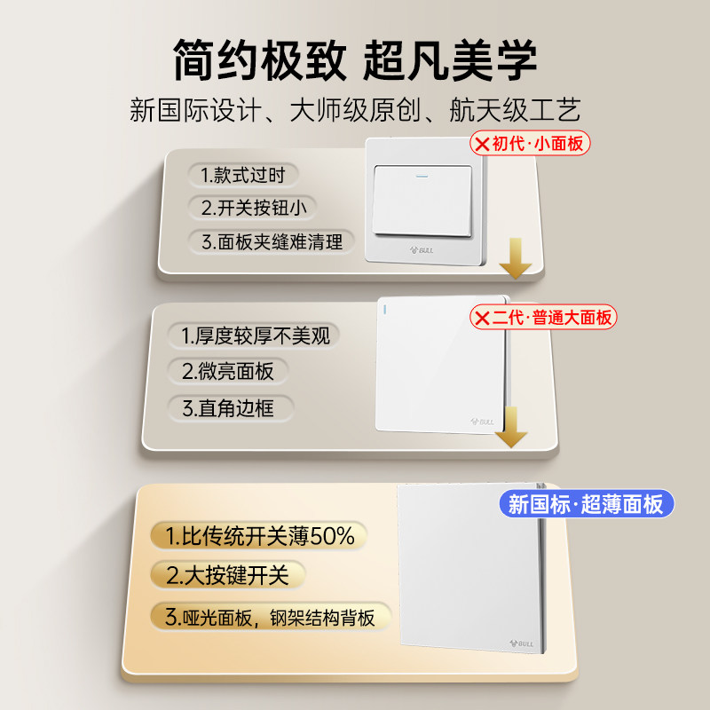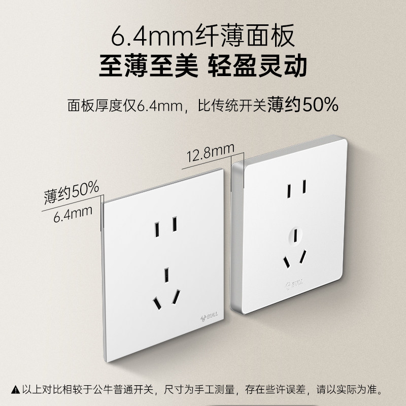 公牛G57蝶翼超薄开关插座面板家用86型暗装墙壁一开双控五孔16A