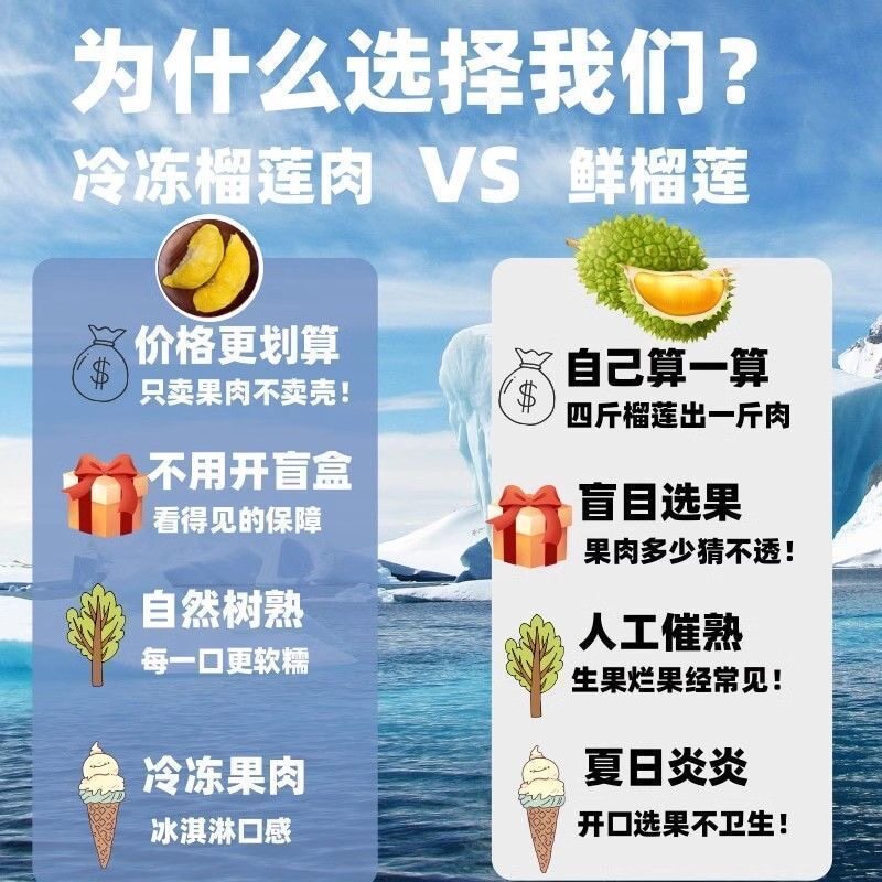 猫山王泰国榴莲肉冷冻果肉新鲜去壳冰冻无核速冻水果树熟榴莲