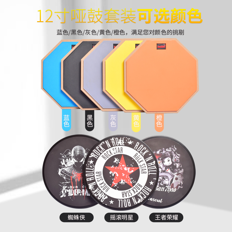 12寸哑鼓套装打击板练习鼓哑鼓垫套装架子鼓练习鼓垫节拍器送鼓棒