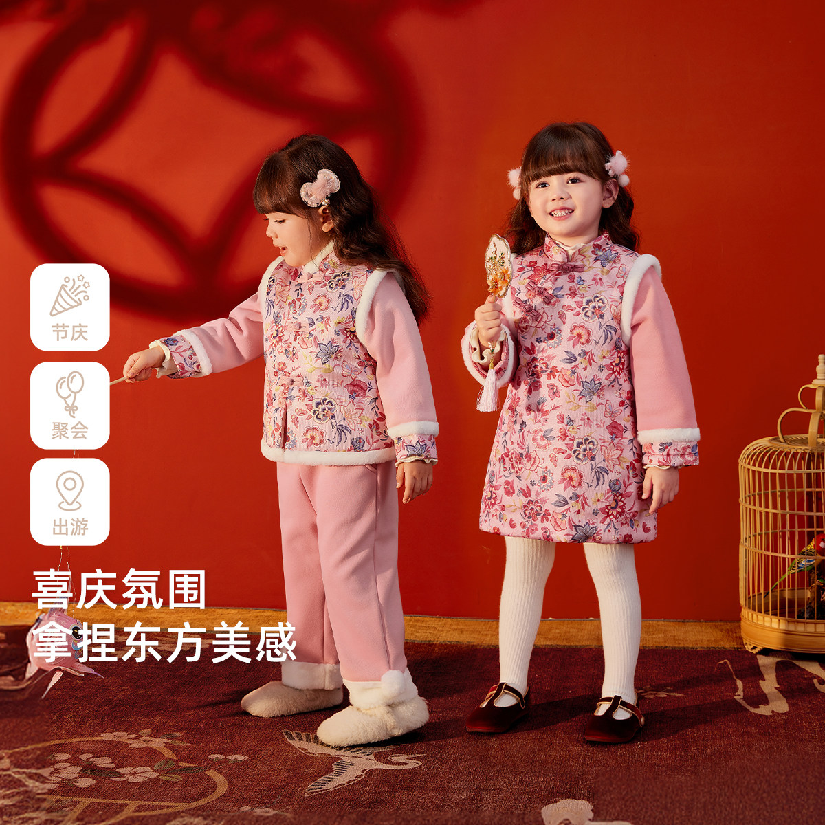唐装女童加厚连衣裙儿童年服冬装夹棉裙子国风保暖童装宝宝旗袍冬
