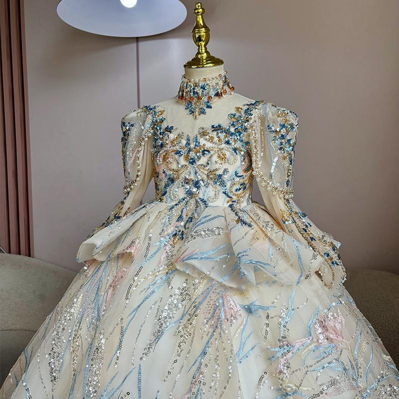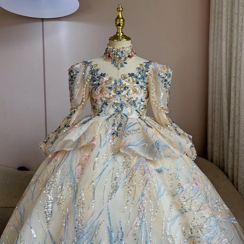 女童礼服小众长袖蓬蓬纱公主裙主持人走秀钢琴表演出服