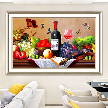 5d钻石画点贴钻十字绣2024新款绣满钻客厅餐厅酒杯水果钻石绣小幅
