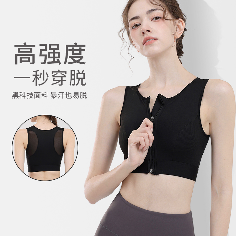 前拉链运动内衣防震高强度防下垂夏季薄款跑步健身瑜伽背心式文胸