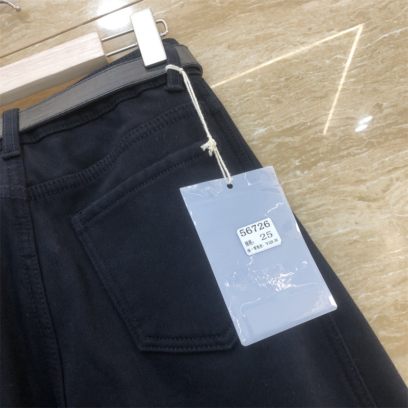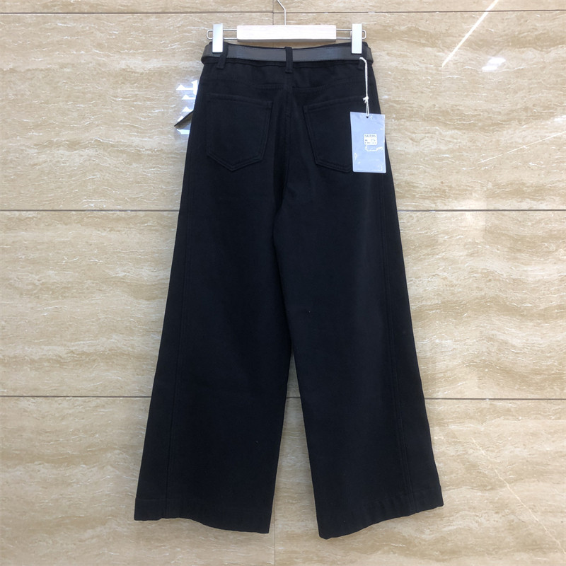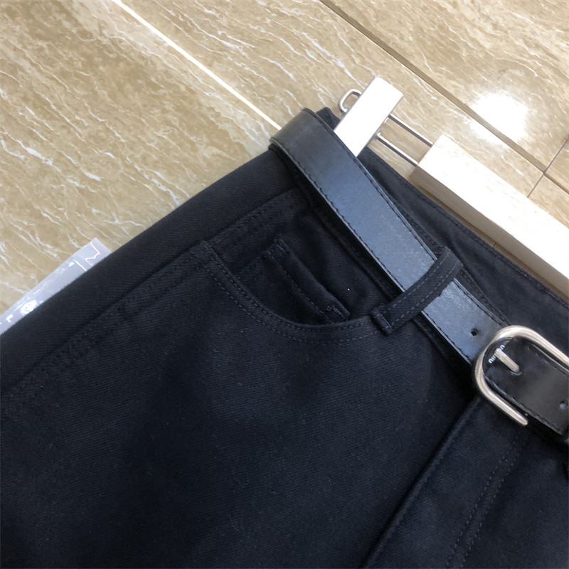 欧洲站56726直筒宽松显瘦加绒藏青深蓝色腰带简约牛仔裤女冬季款