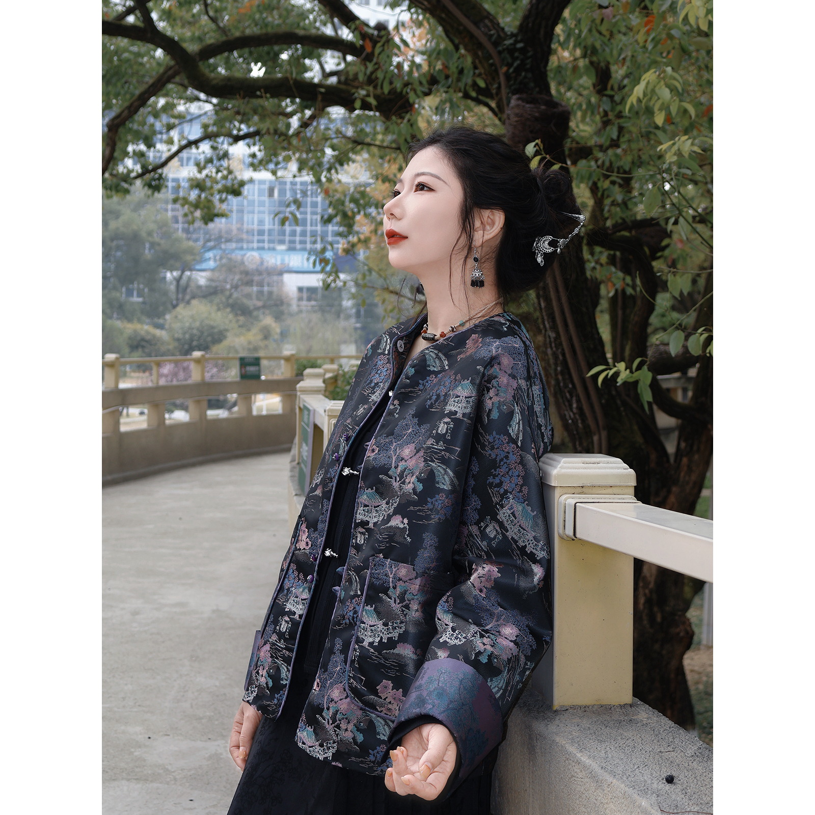 真大鱼大小码【屿否】新中式国风复古提花暗纹外套上衣设计感小众