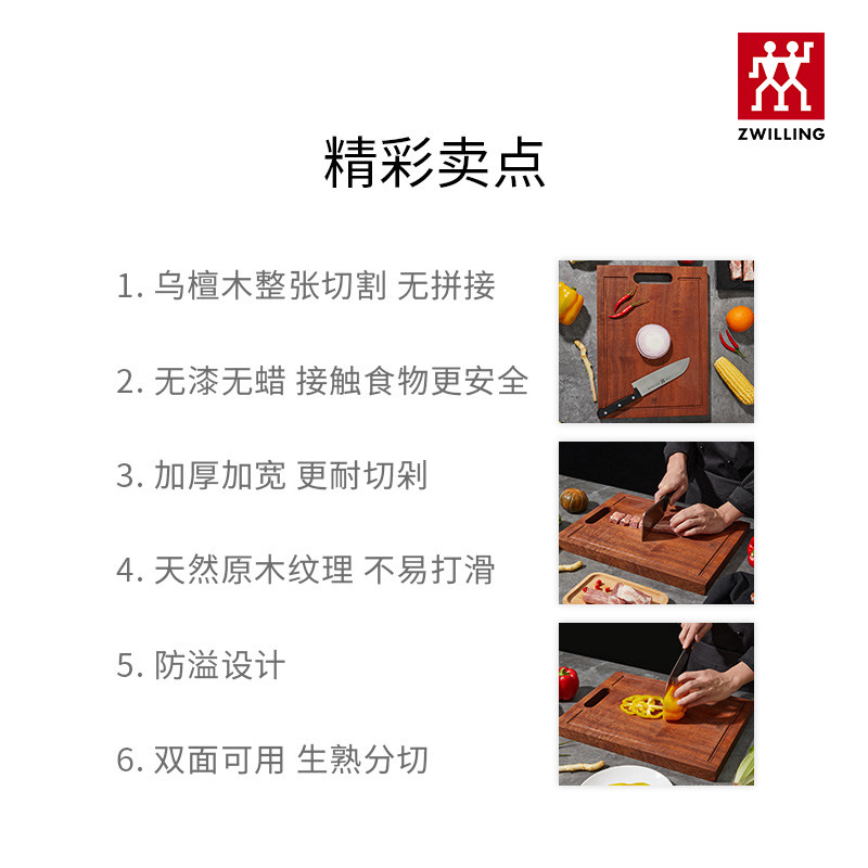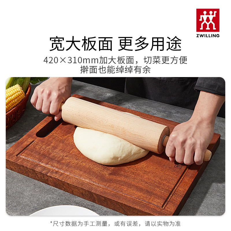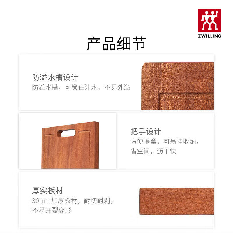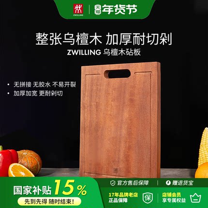 德国双立人砧板乌檀木案板加厚加宽整张实木双面切菜家用切菜板