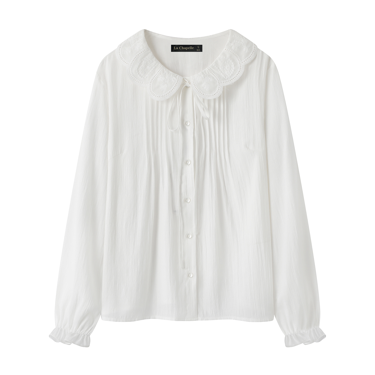 拉夏贝尔/La Chapelle法式娃娃领长袖衬衫女秋季新款气质衬衣上衣