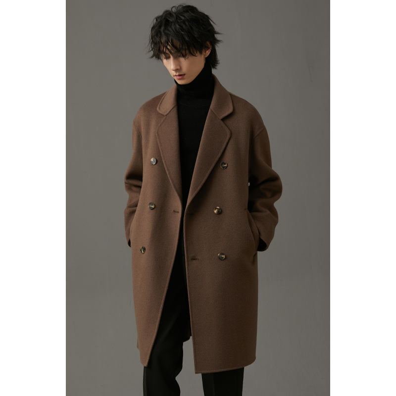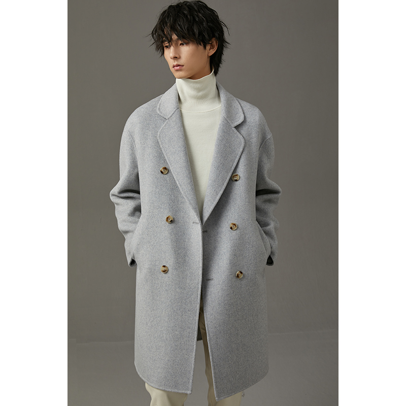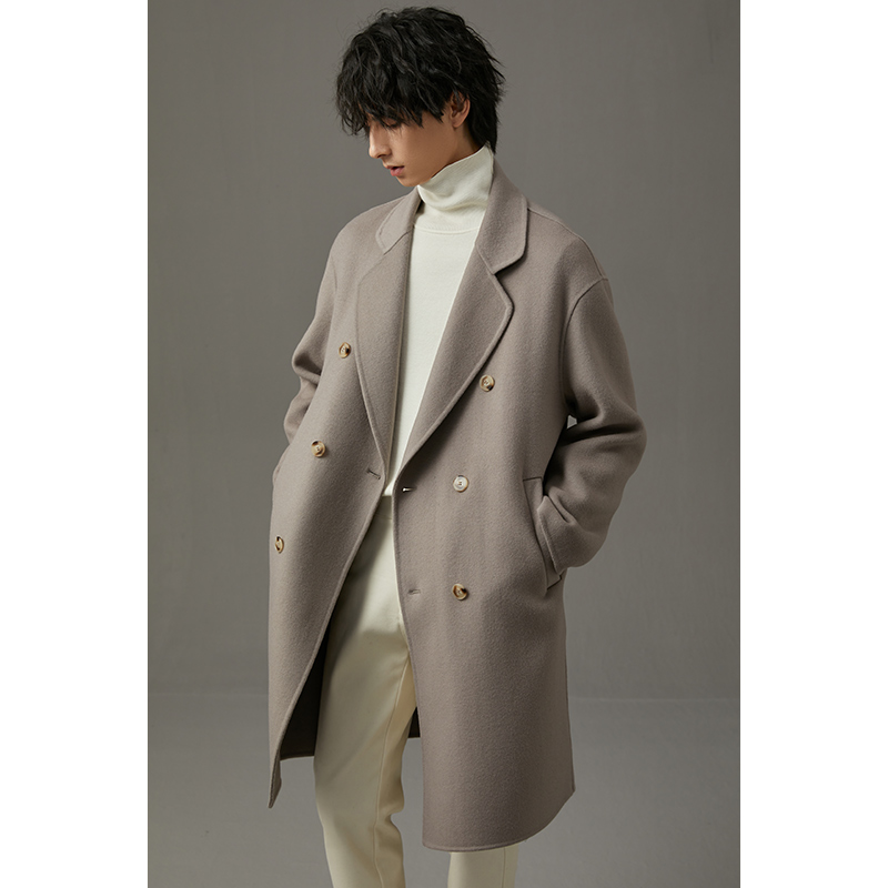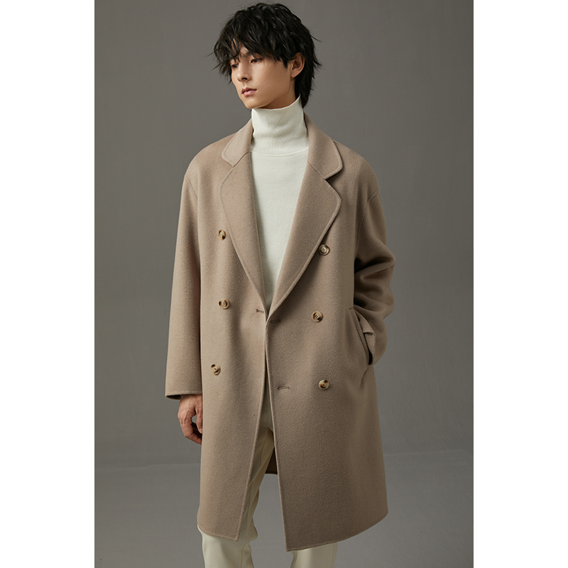 手工双面呢大衣男士中长款秋冬季休闲非羊绒加厚宽松风衣妮子外套