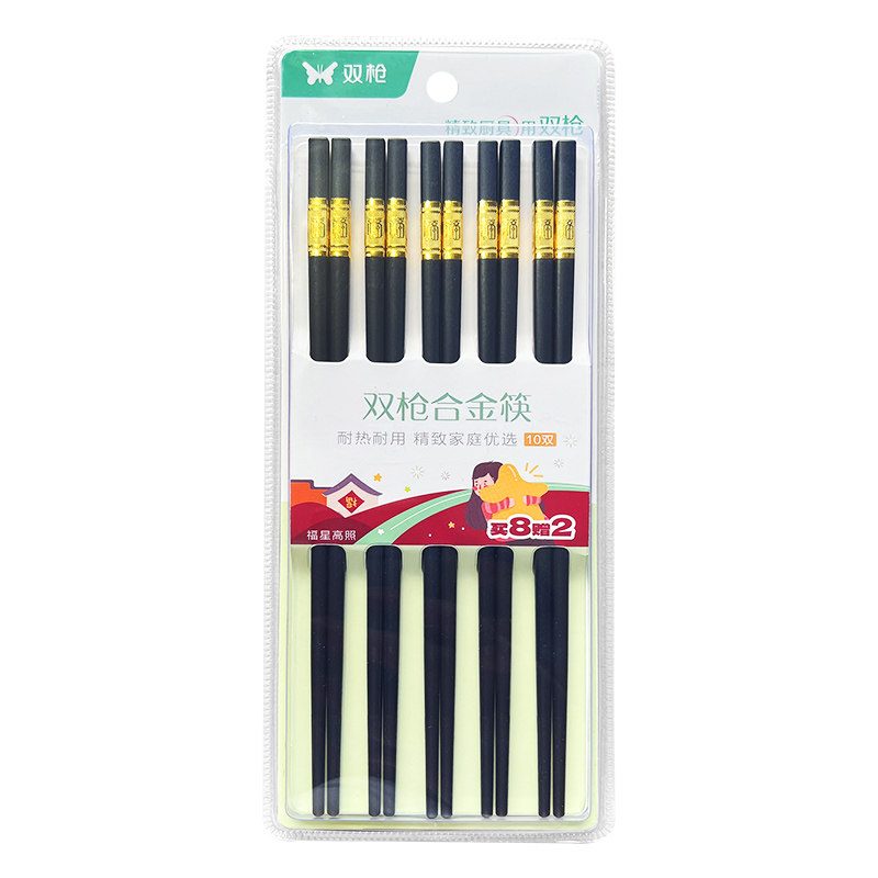 双枪家用合金筷子防滑防霉耐高温家庭装酒店餐厅精品筷子10双装