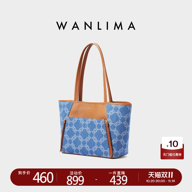 万里马2025新款丹宁大翅膀托特包通勤手提单肩腋下包时尚老花包女