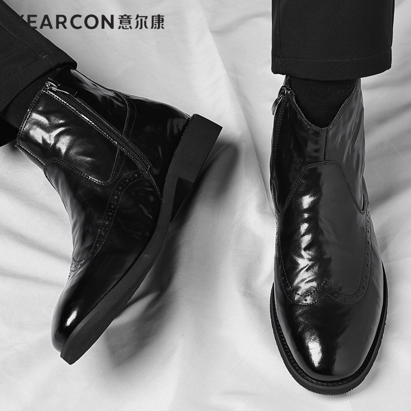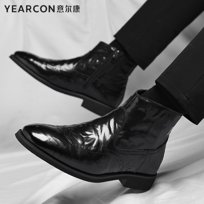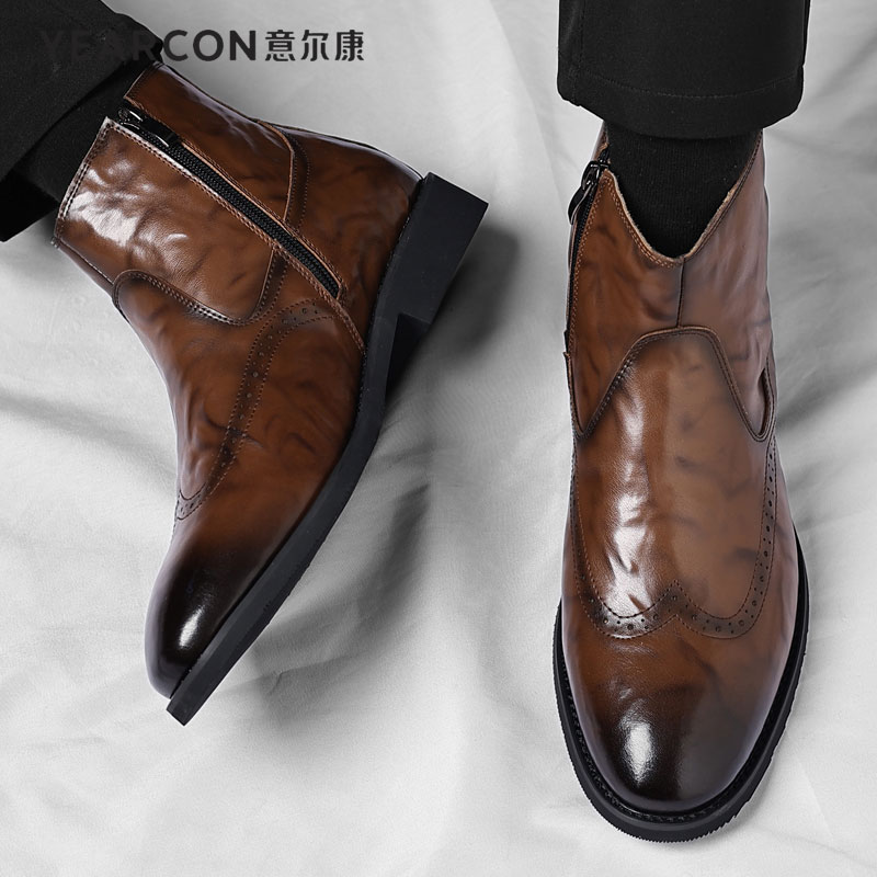 意尔康皮鞋2025秋冬季新款男士正装商务真皮高帮百搭英伦切尔西靴