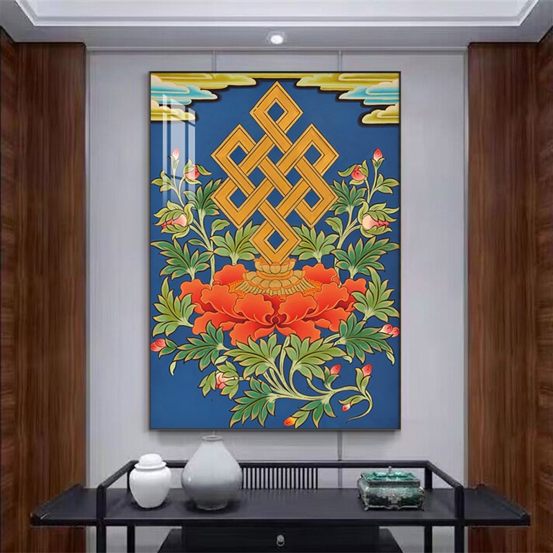 速发唐卡吉祥八宝装饰画中式玄关过道佛像客厅壁画中堂画藏族挂画