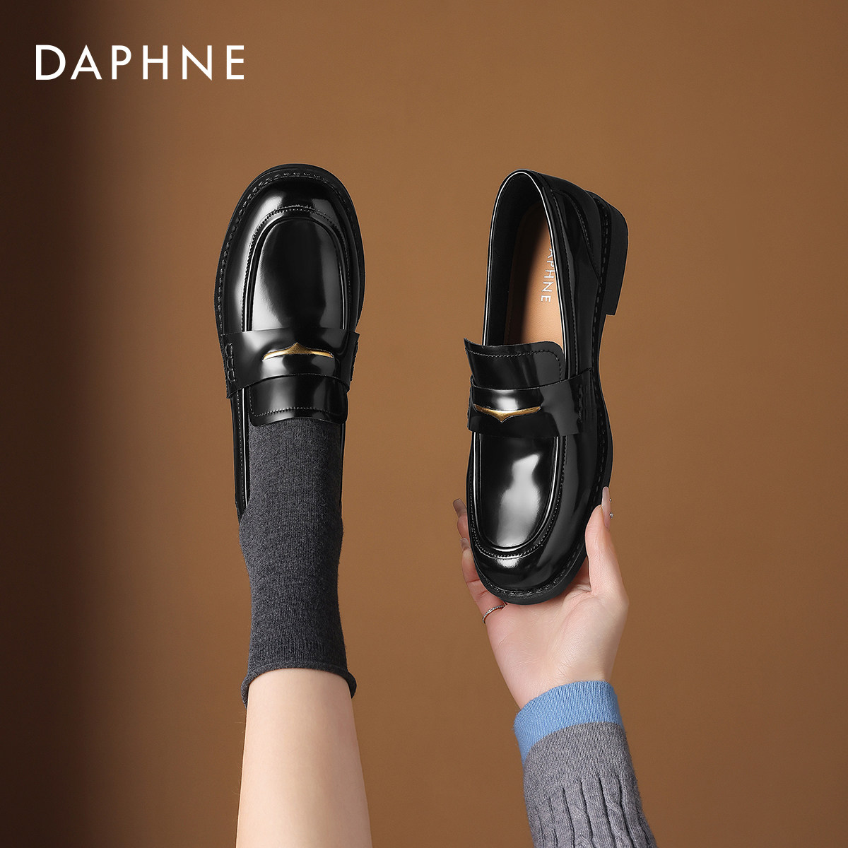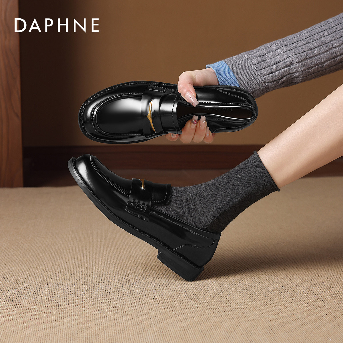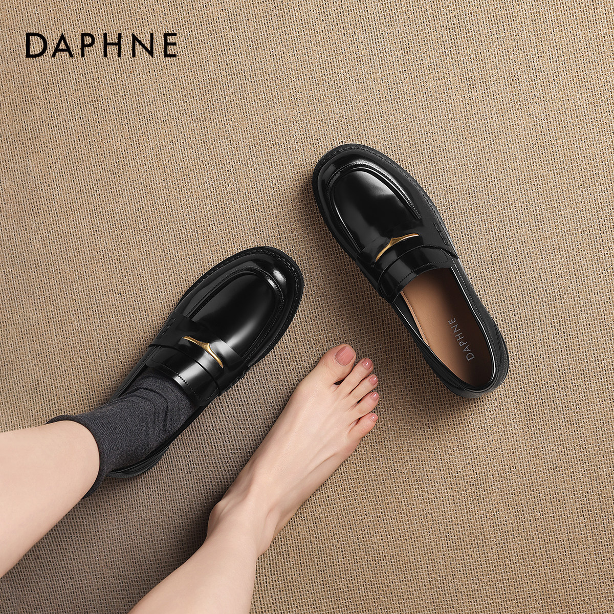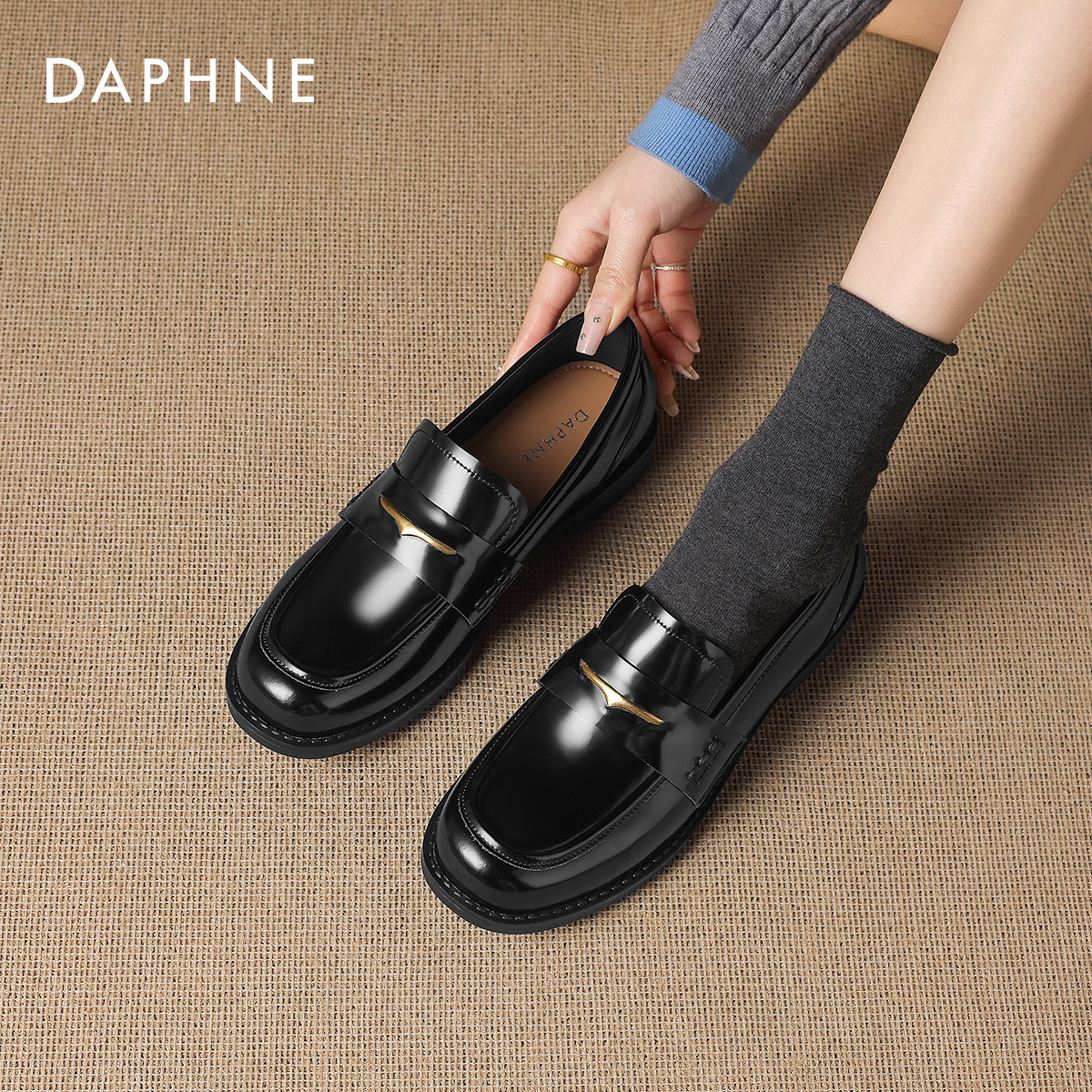 达芙妮漆皮乐福鞋女款2026新款英伦风黑色jk皮鞋女士通勤平底单鞋