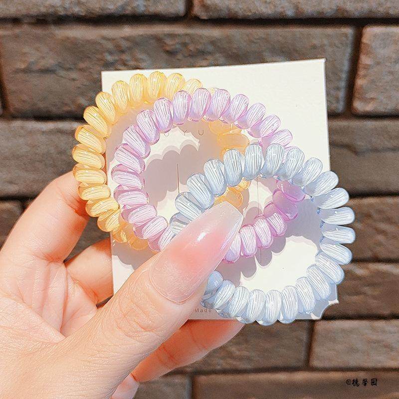 发绳头绳气质韩版简约马尾果冻色透明女发圈手环电话线扎头发皮筋