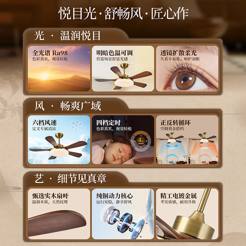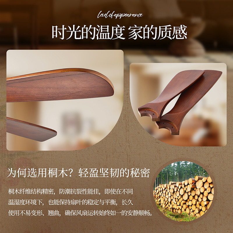 雷士照明实木扇叶餐厅吊扇风扇灯客厅卧室吸顶灯中古中式电风扇灯