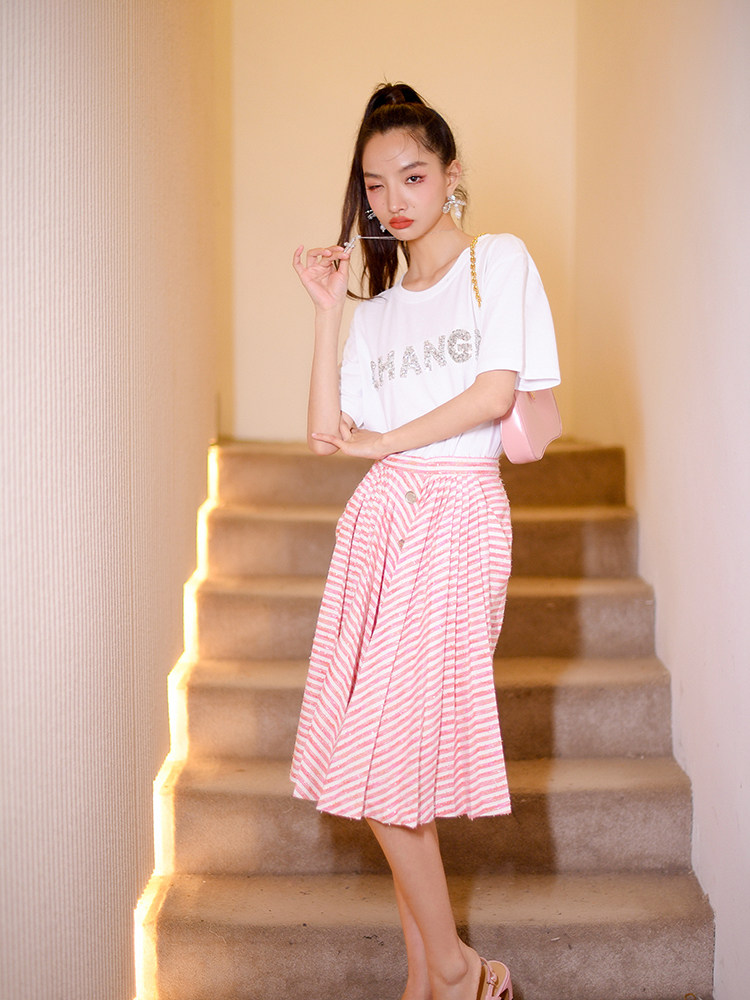 钉钻设计感白色短袖t恤上衣