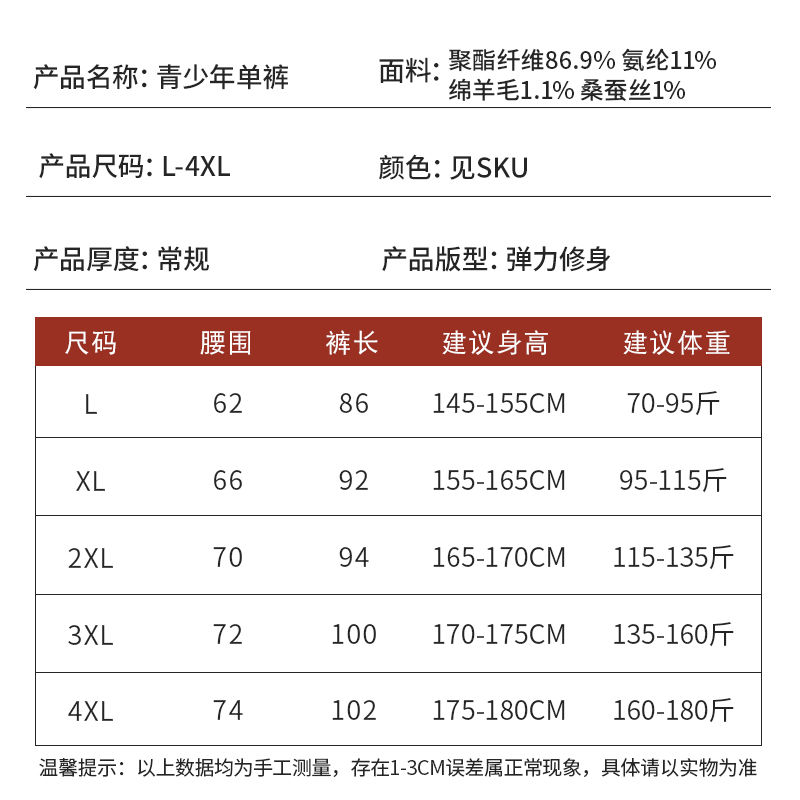 青少年秋裤男薄款线裤初中高中学生男款棉毛裤男生保暖裤含羊毛冬