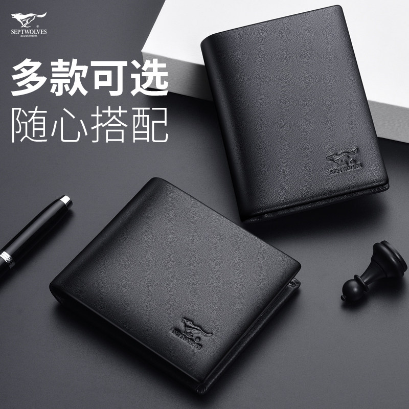 七匹狼钱包男真皮新款简约头层软牛皮韩版正品潮牌时尚学生皮夹子