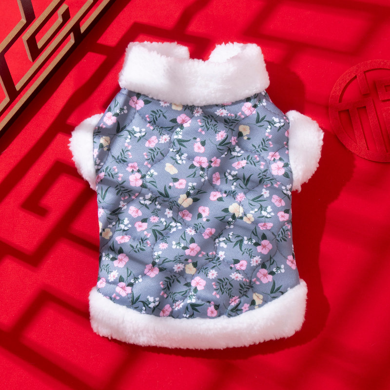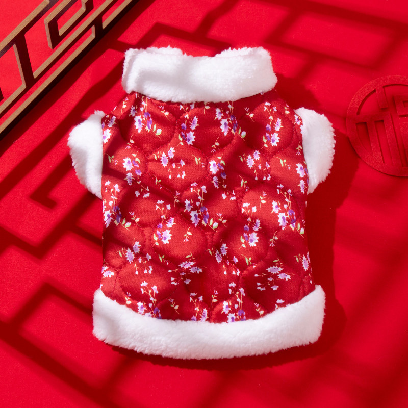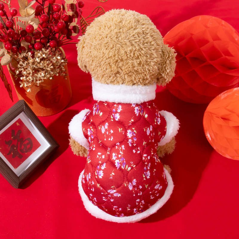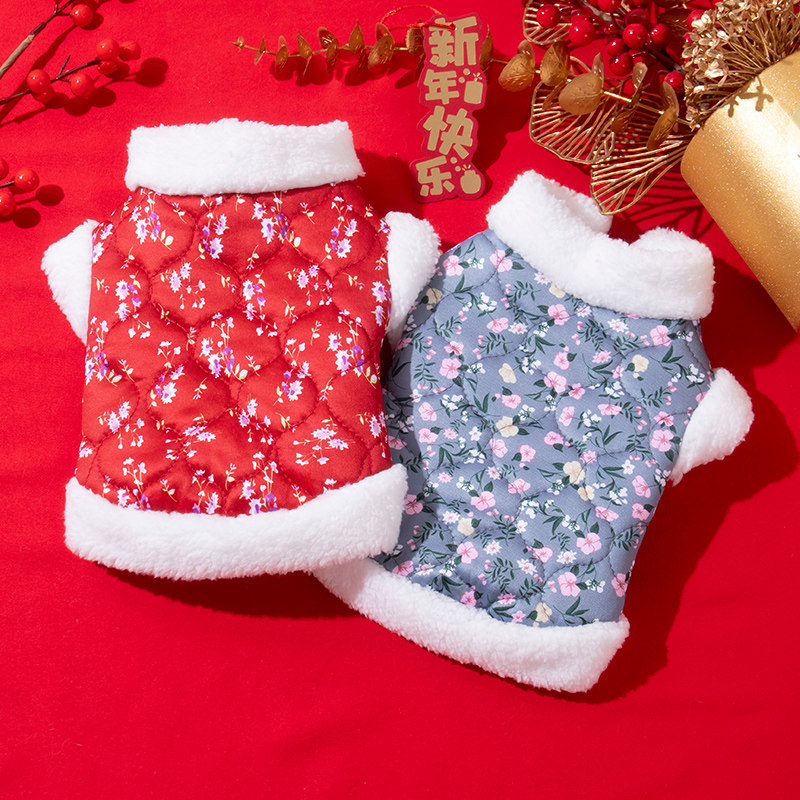 狗狗衣服中国风花朵棉衣泰迪比熊博美小型幼犬秋冬装宠物猫咪背心