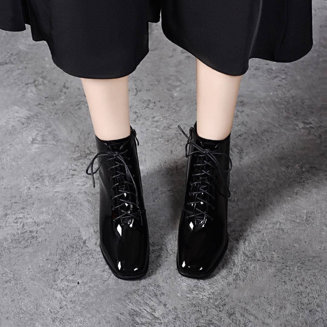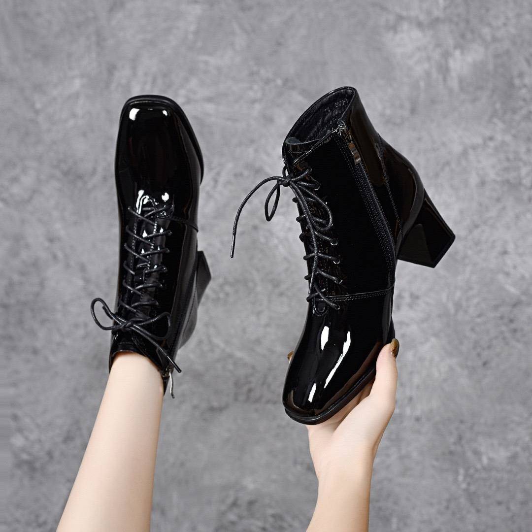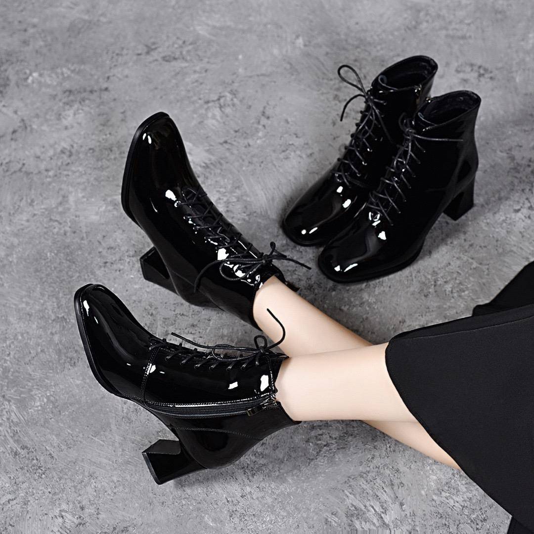 秋冬2025新款方头短靴女粗跟高跟鞋女鞋马丁靴1007u
