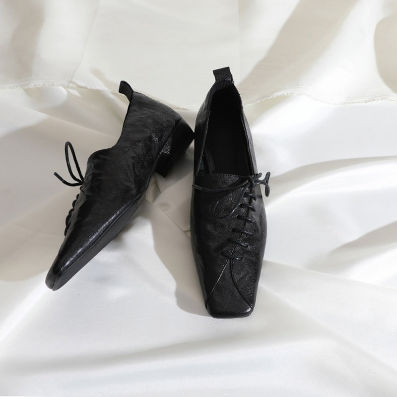 莲花府邸2025春季新品单鞋英伦复古风小皮鞋羊皮休闲百搭粗跟女鞋