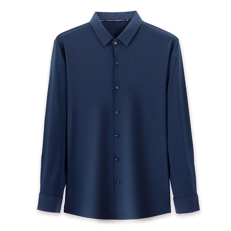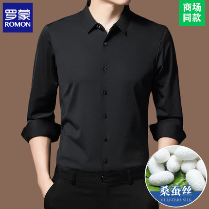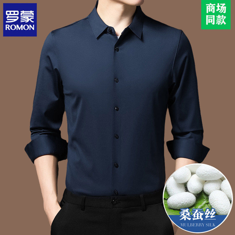 罗蒙2025春秋新款高级感100%桑蚕丝长袖衬衫男士商务休闲免熨烫衬