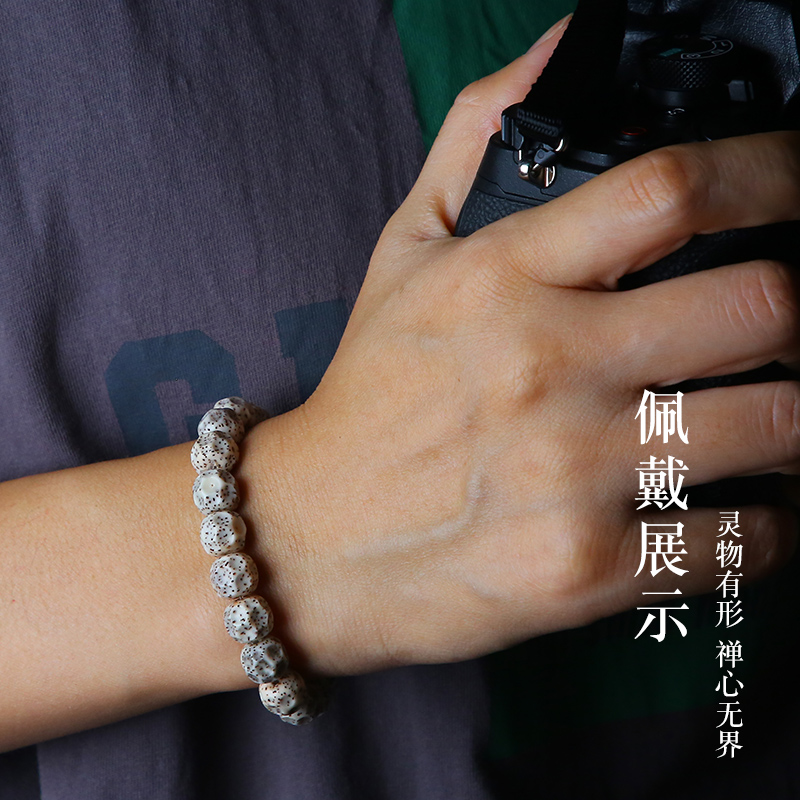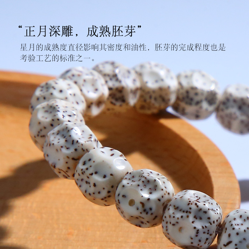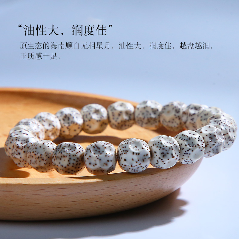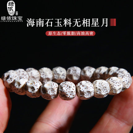海南无相星月菩提手串单圈原生态石玉料顺白文玩佛珠手链高密高油