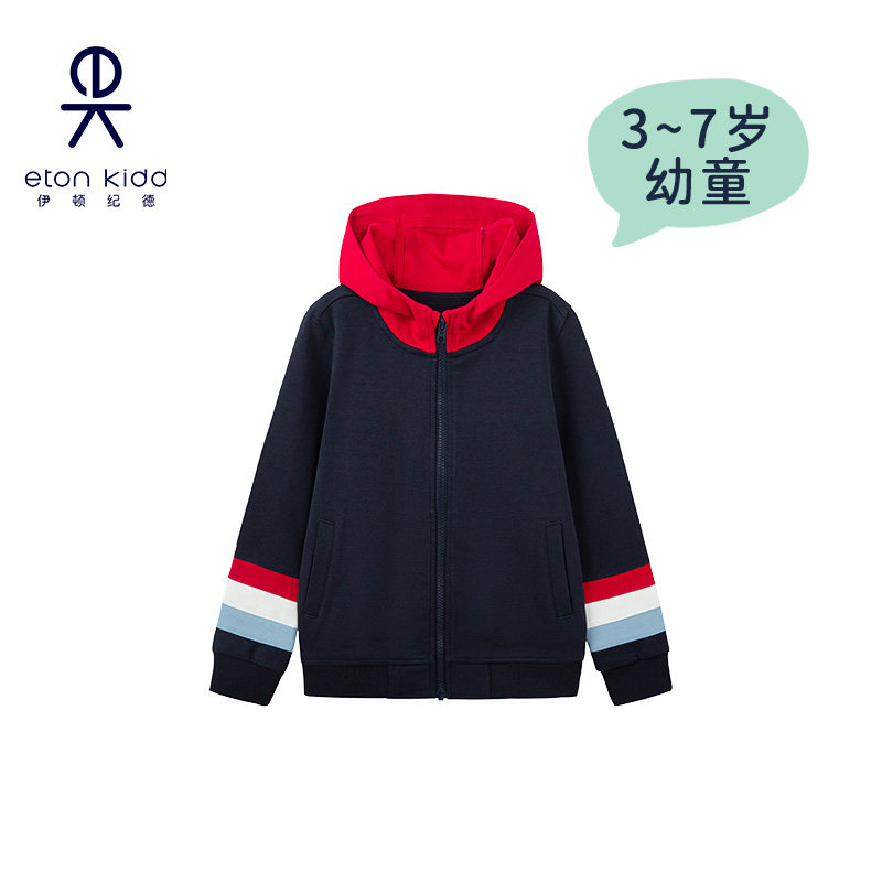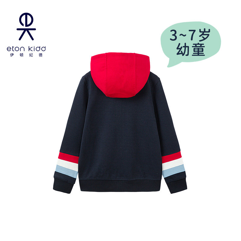 伊顿纪德儿童装连帽外套空气层棉毛布拼色连帽运动服幼儿园24Y501