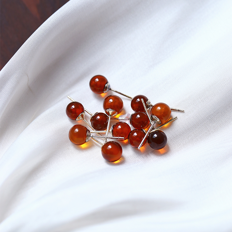 福利 天然血珀耳钉圆珠S925银镶嵌小灯泡款耳钉 女款蜜蜡琥珀耳饰