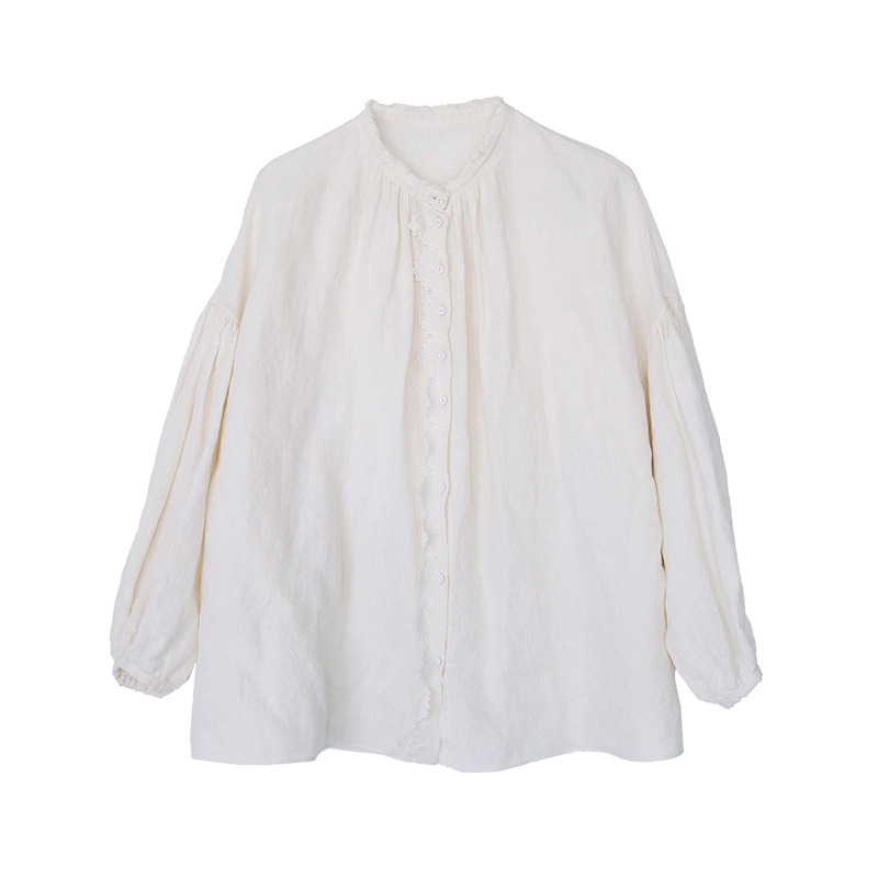 新款文艺复古原创女装古董白亚麻禅意仙气新中式宽松休闲衬衫