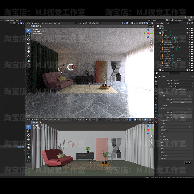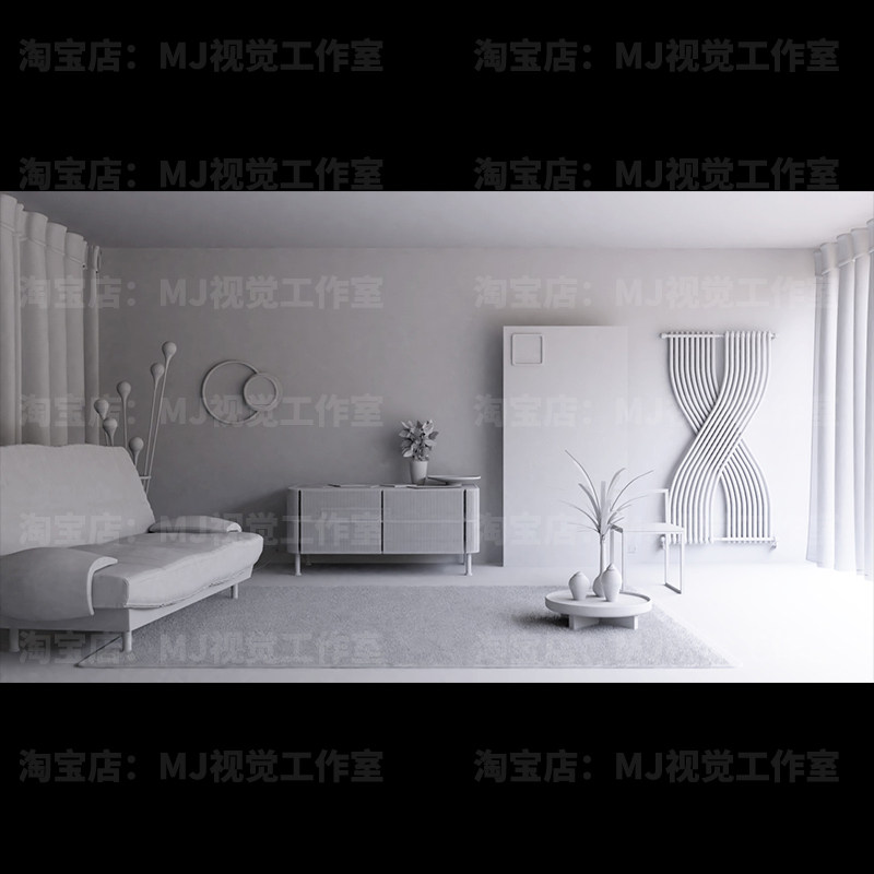 Blender客厅室内设计场景沙发艺术简洁茶几柜子模型建模素材69
