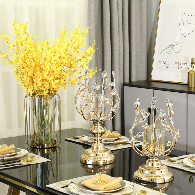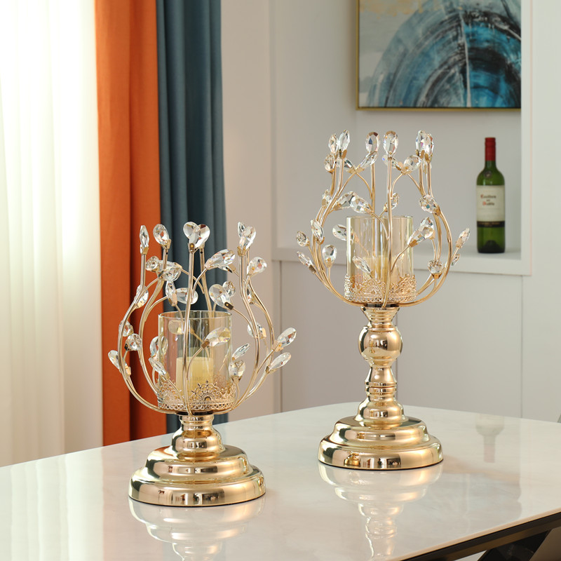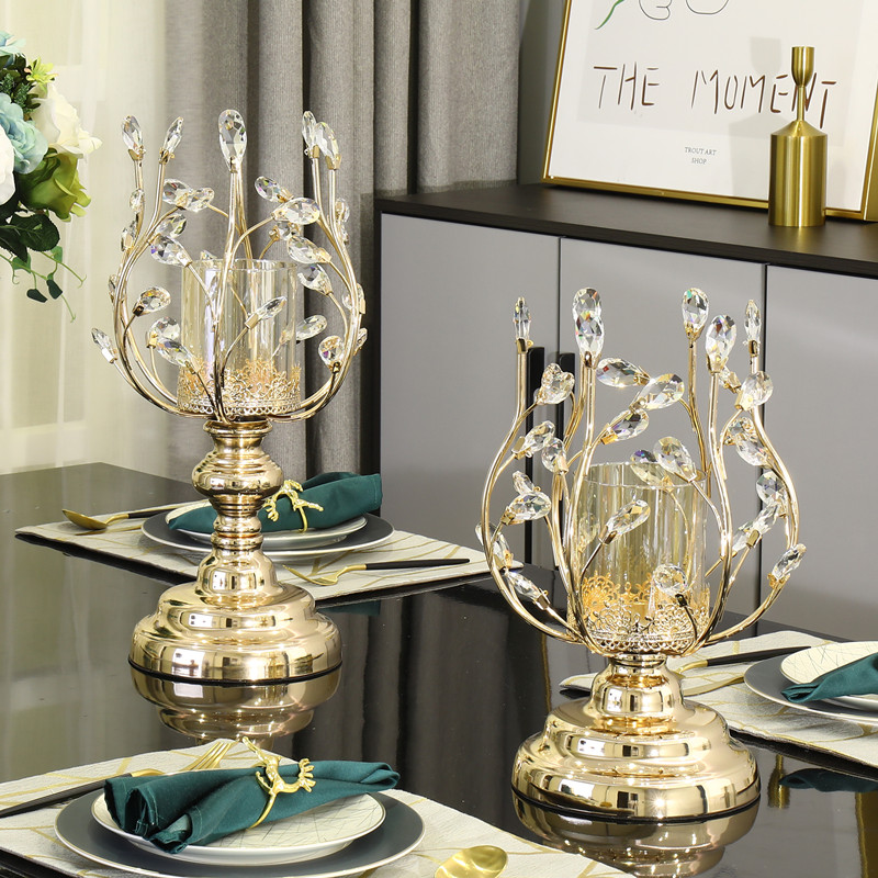 北欧轻奢水晶烛台欧式餐桌装饰品摆件家居浪漫烛光晚餐蜡烛台摆设
