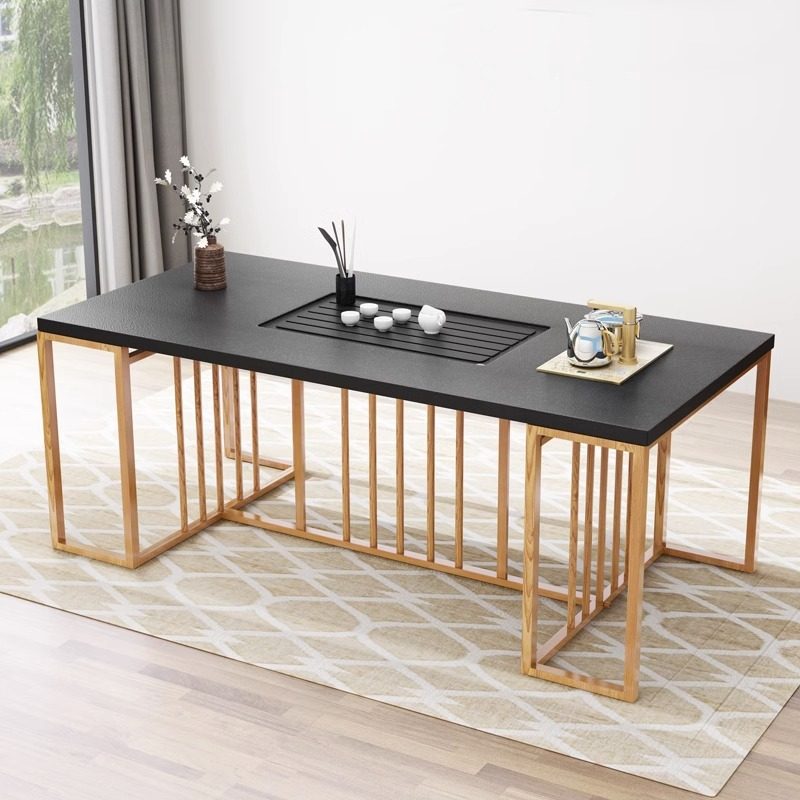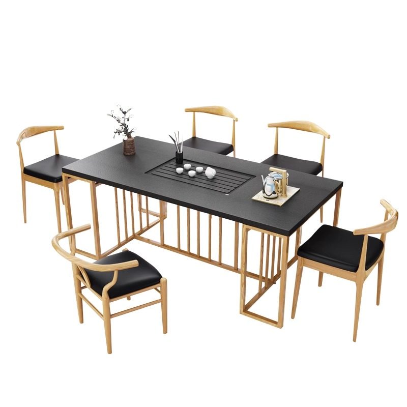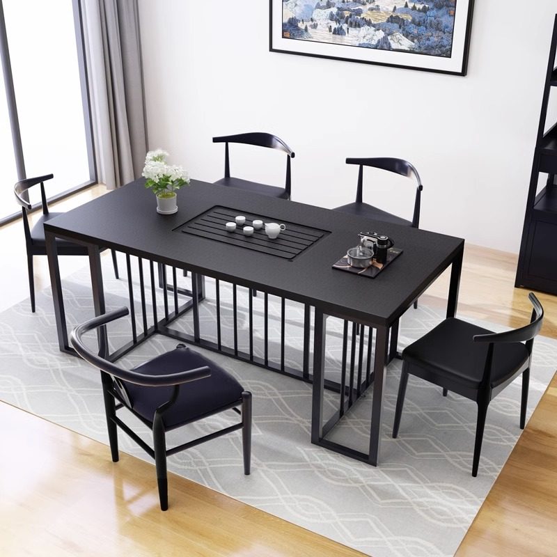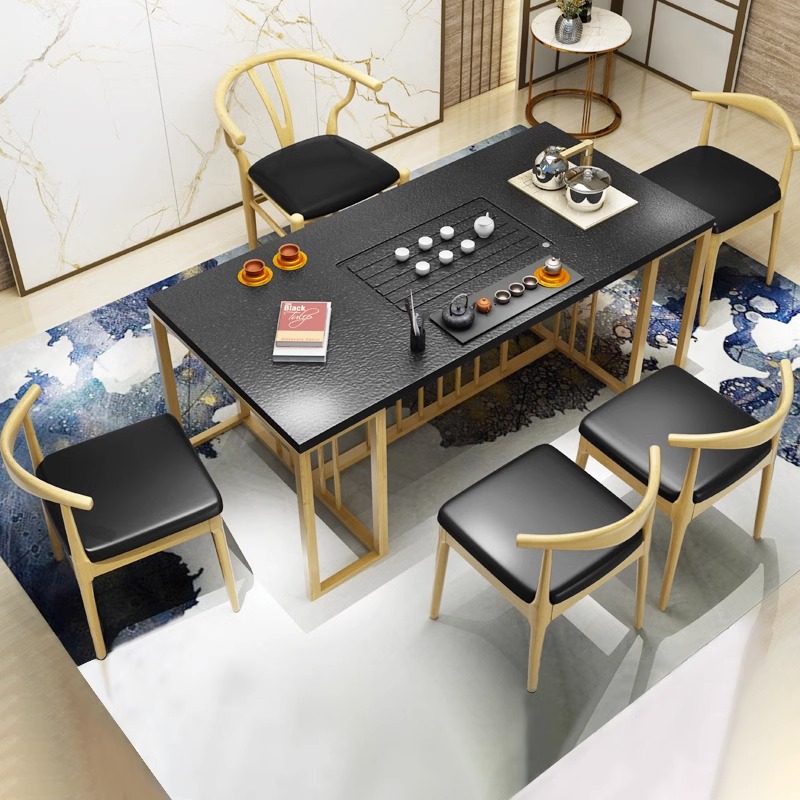 火烧石茶桌椅子组合现代简约办公室客厅小茶台铁艺大理石功夫茶几