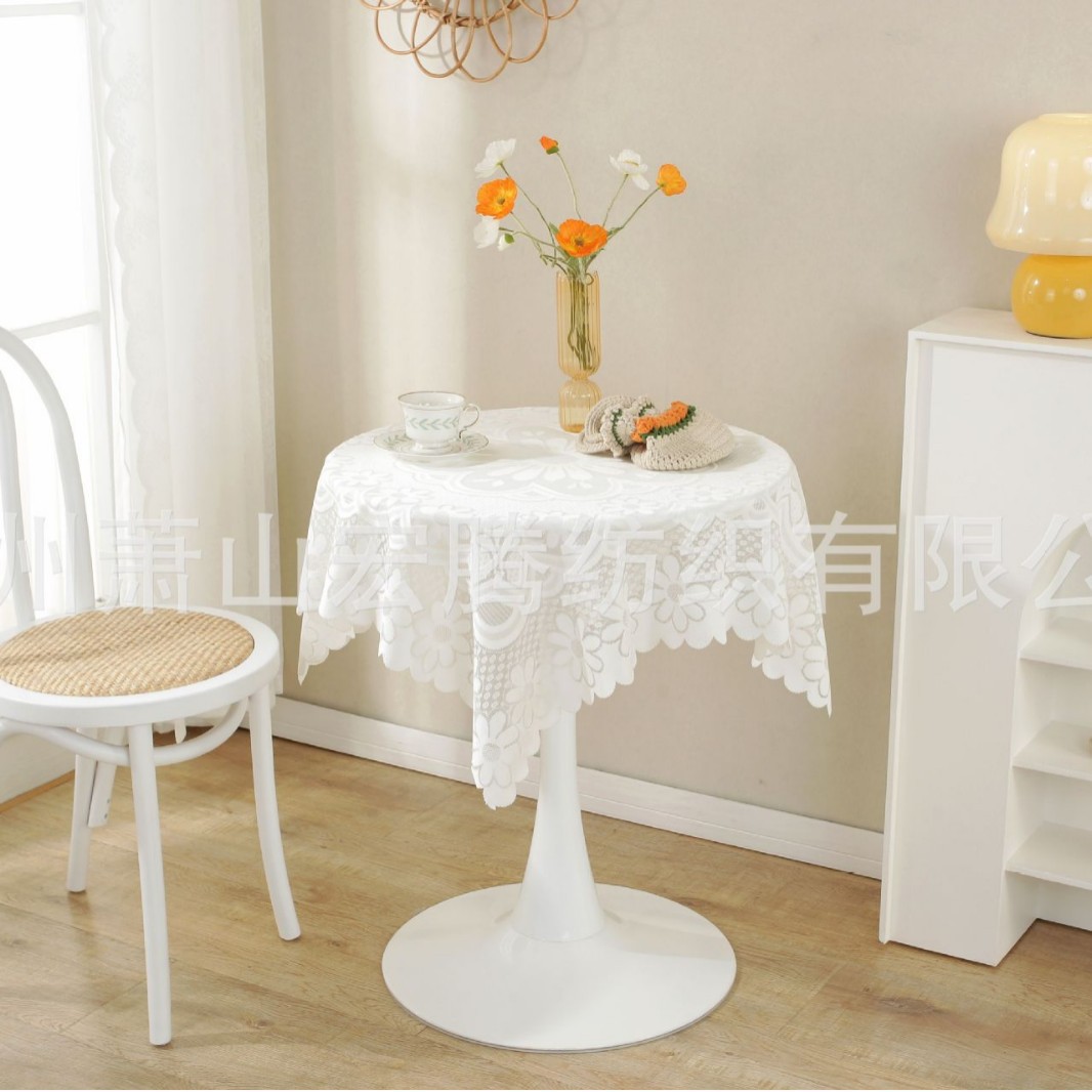 法式复古ins风桌布白色蕾丝茶几餐桌布化妆台布棉麻圆桌长桌布