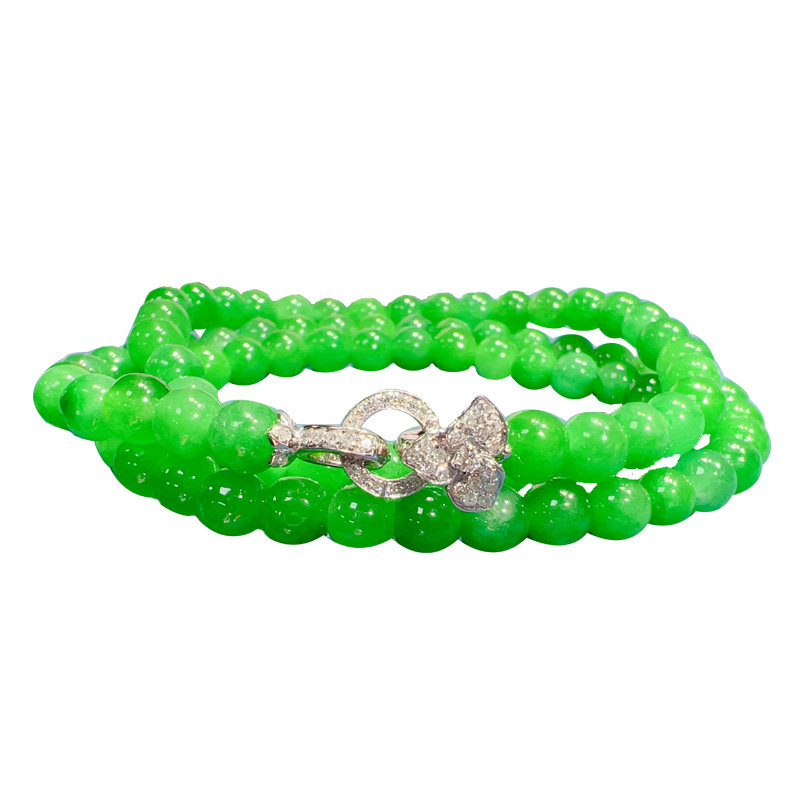 18K白金镶嵌钻石小米珠链扣可挂吊坠翡翠珠扣珍珠手链项链金扣头