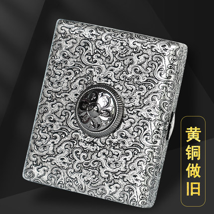 酷宝 六字真言古银铜烟盒20支装便携复古创意转轮男中支香烟夹盒