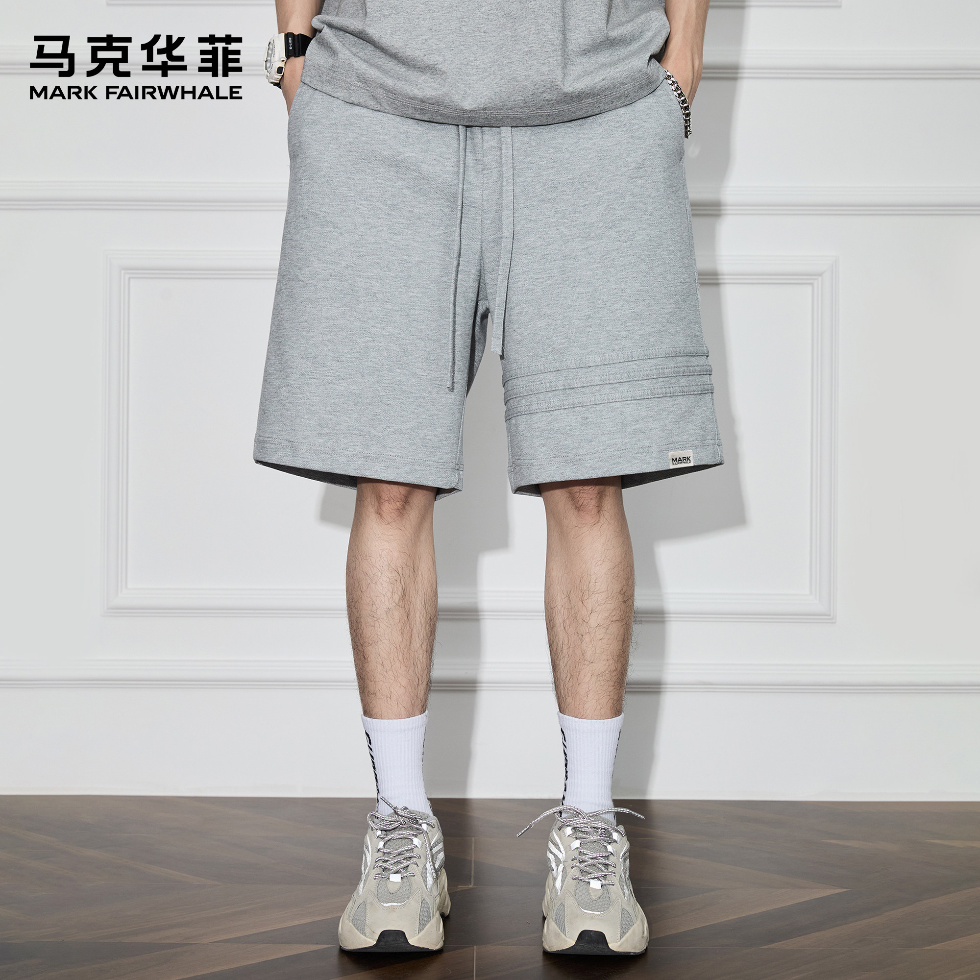 马克华菲休闲短裤男夏季潮牌薄款复古三条杠运动篮球宽松五分中裤