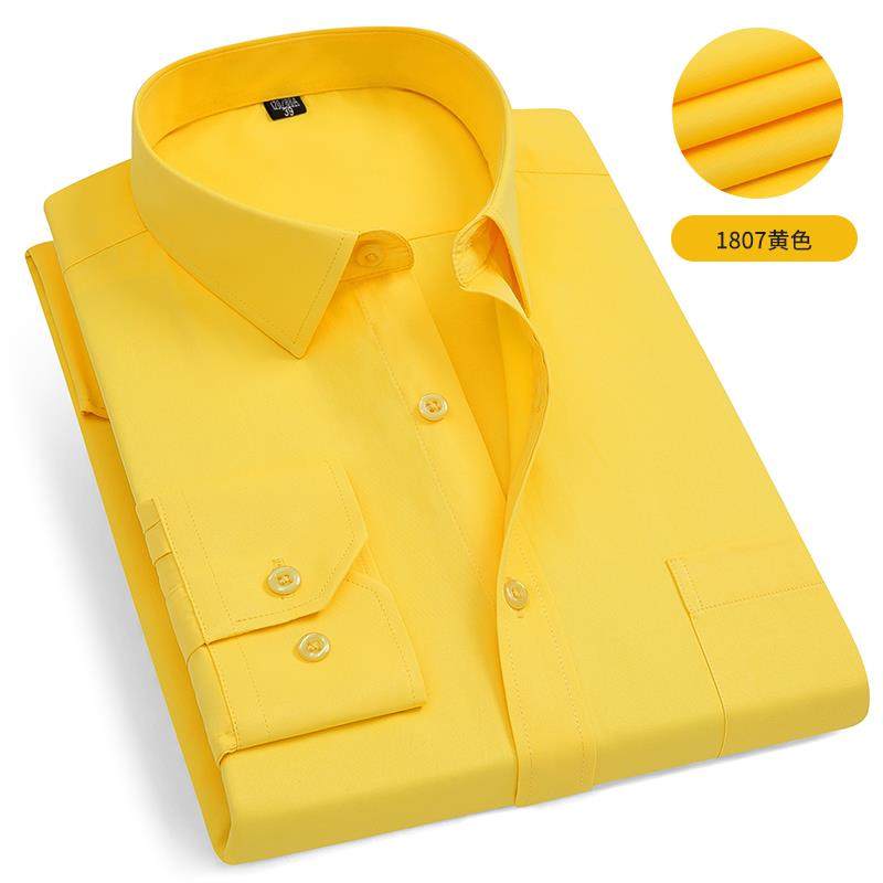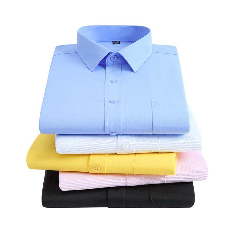 方领修身白衬衫男长袖商务休闲职业工装纯蓝色衬衣男打底衫工作服