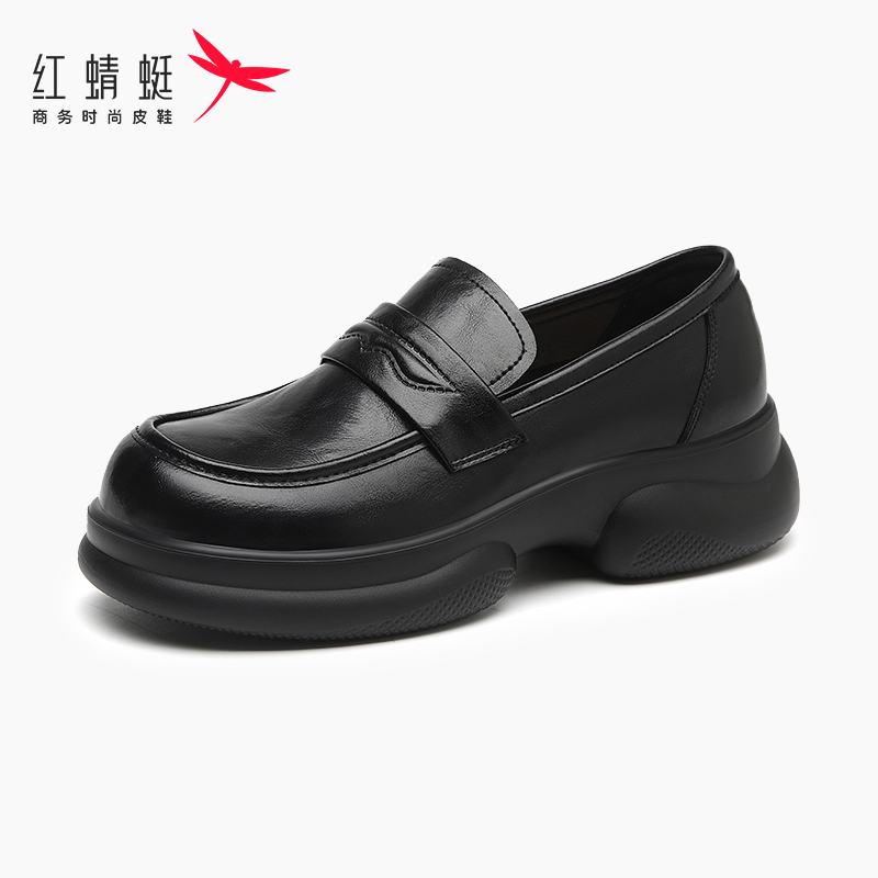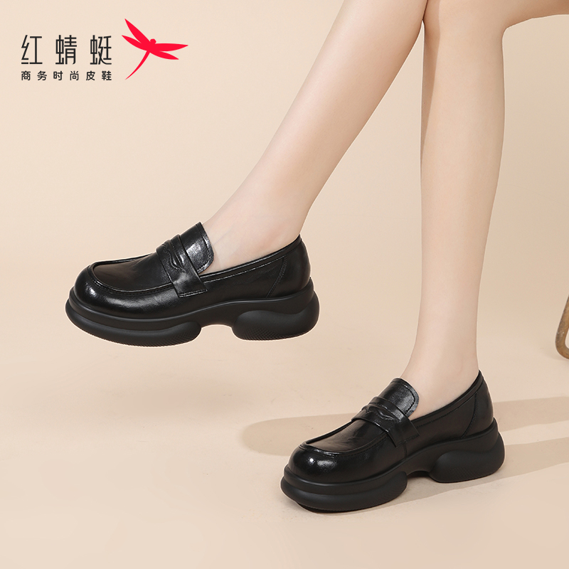 红蜻蜓女鞋春秋季一脚蹬懒人小皮鞋爆款厚底乐福鞋女妈妈单鞋真皮