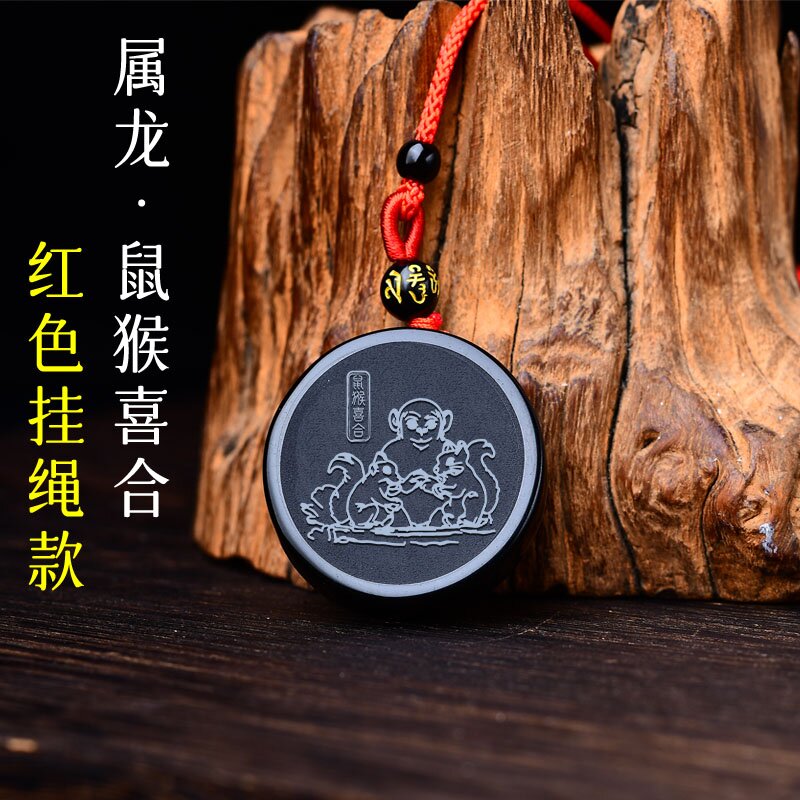 集雅轩宋韶光大师2026马年吉祥物生肖属龙鼠猴喜合黑曜石招财吊坠