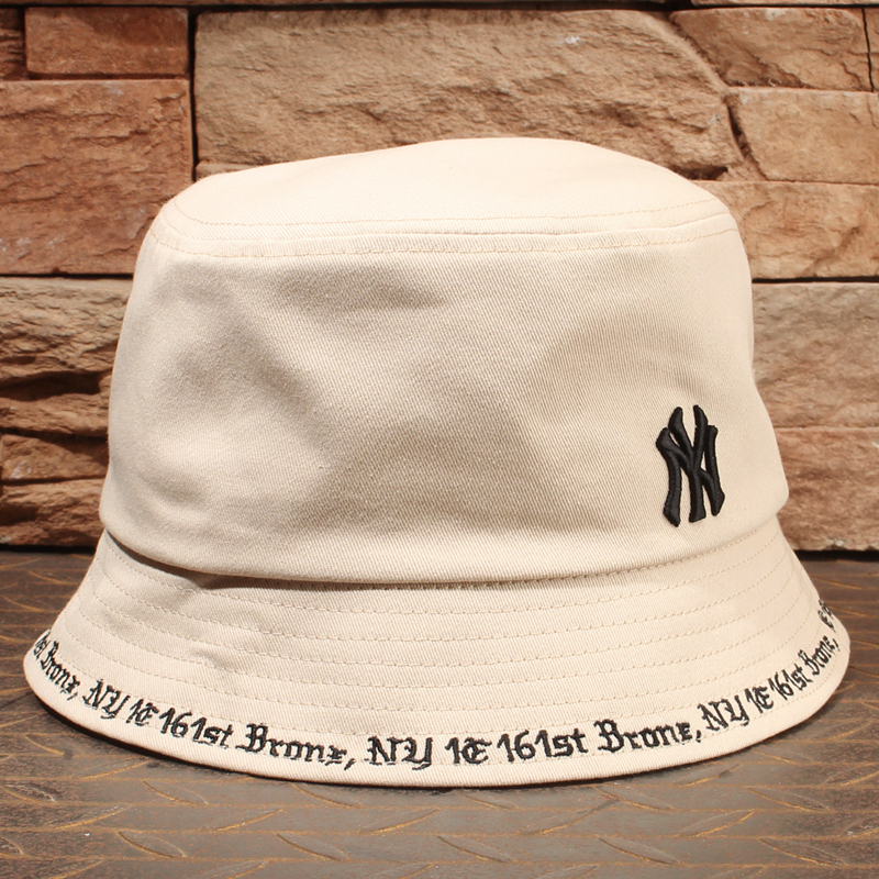 韩国MLB渔夫帽鹿晗同款情侣春夏小标NY洋基队遮阳帽黑色盆帽米色